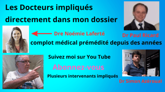 "Ok, ce site internet est pour démontrer la négligence criminelle préméditée depuis plusieurs années. Les pages qui vont suivre vont démontrer plusieurs intervenants qui sont impliqués dans mon dossier. Le but de leur complot est de protéger dès le début les médecins qui sont impliqués dans ma dégradation physique et ceux qui se rajoutent automatiquement ; ce système se protège ensemble, comme le font la plupart des ordres professionnels.