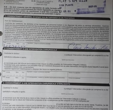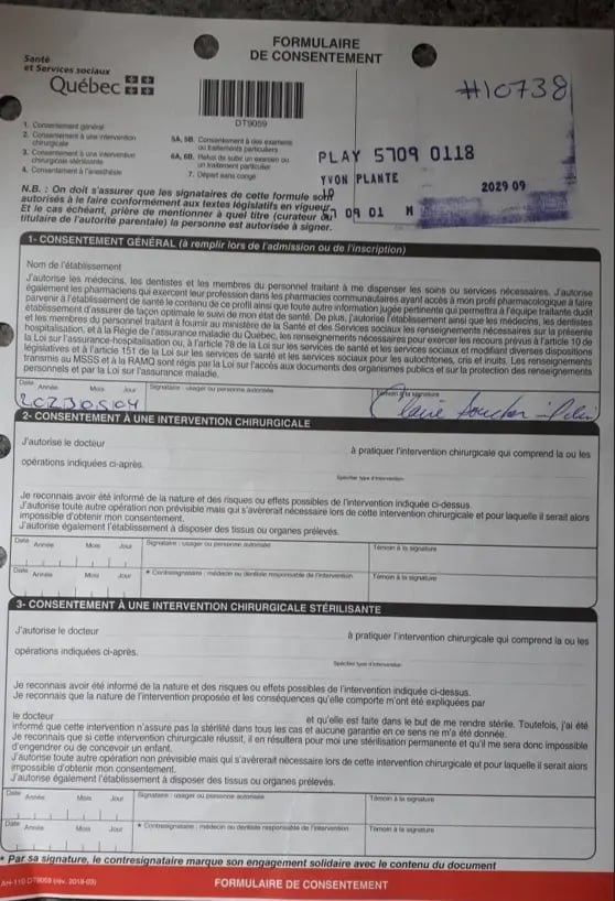Claire c'est un formulaire de consentement générale aux soins c'est pas spécifié parce que vous voulez que je reprenne votre pression, je pense que c'est pour ça que vous voulez me rencontrer M, Plante