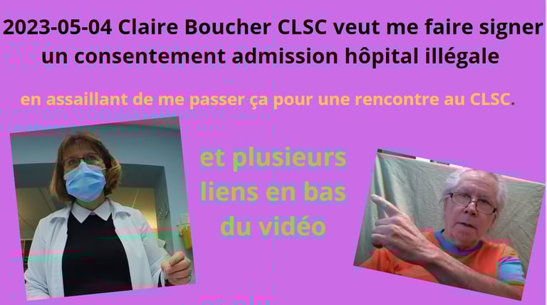 2023-05-04 Claire Boucher CLSC veut me faire signer un consentement admission hôpital illégale