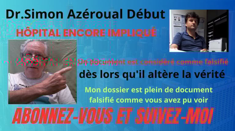Je vous montre aussi, un peu plus bas, la preuve du début. Dr Azéroual avec le docteur Paul Ricard. Dès le début, un rapport falsifié avec l'hôpital de Louisville, en changeant les dates sur des documents. Suite à mes demandes de documents, cela démontre que j’ai été retardé volontairement.