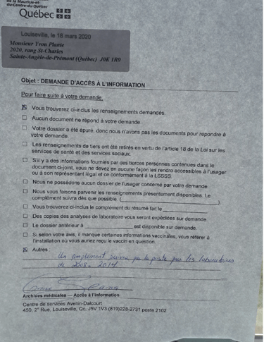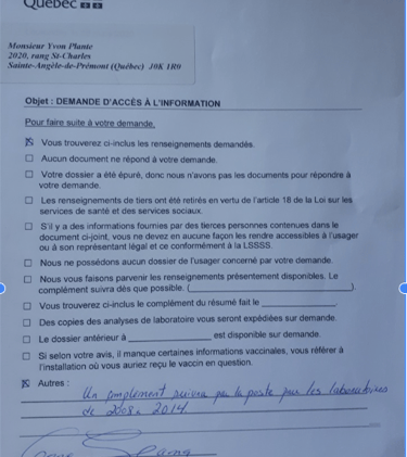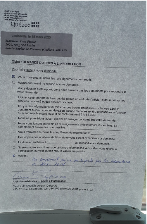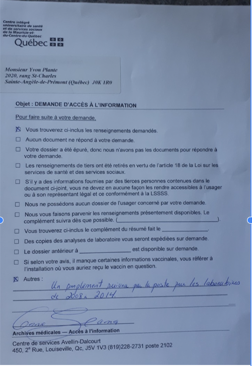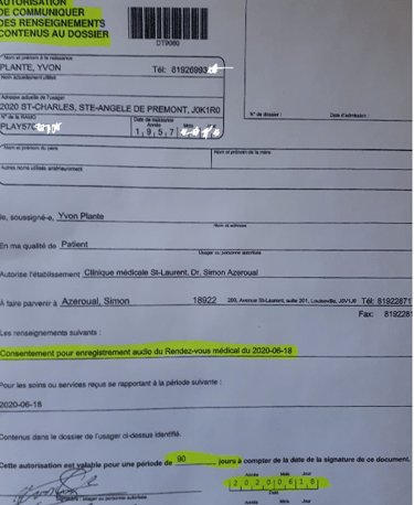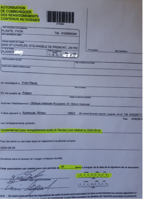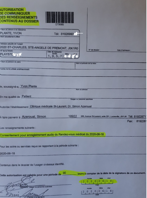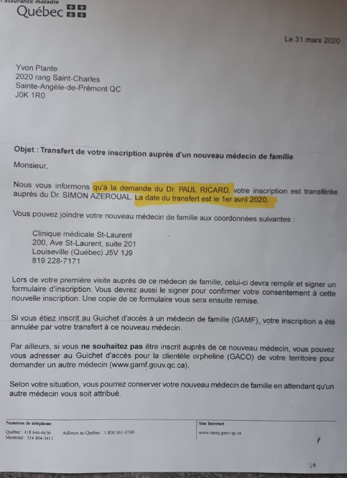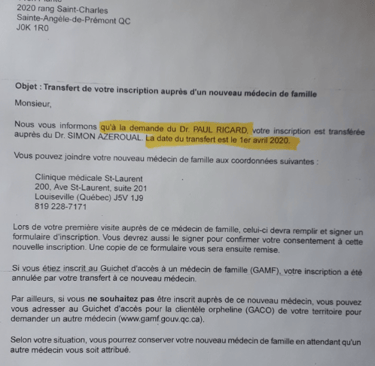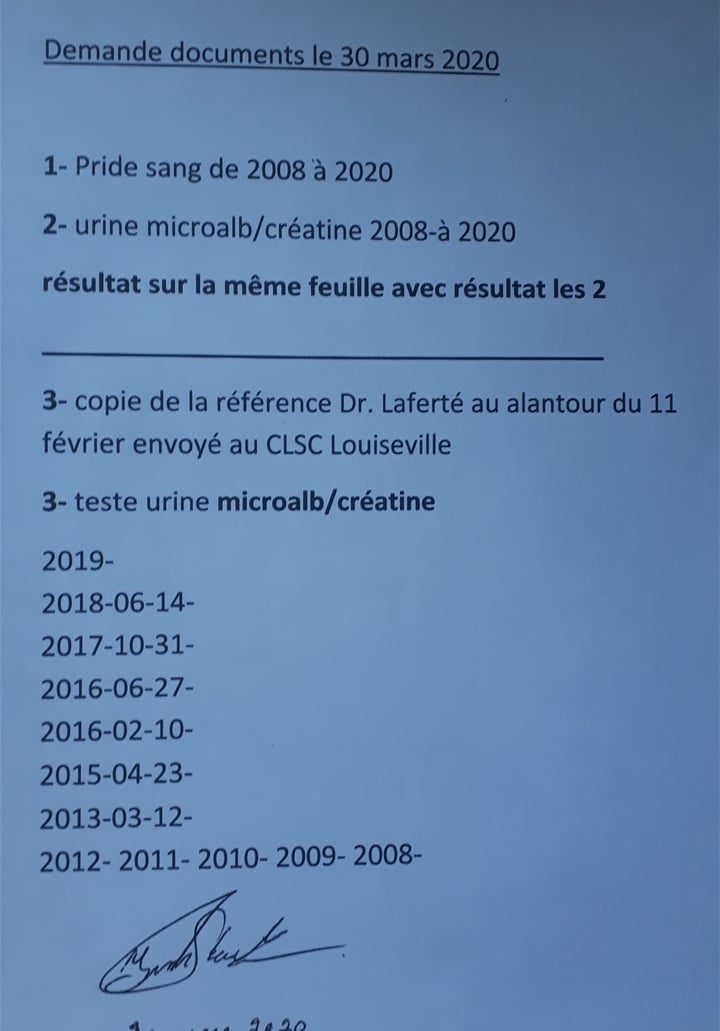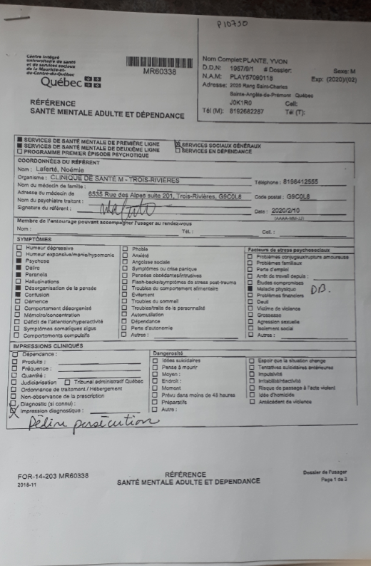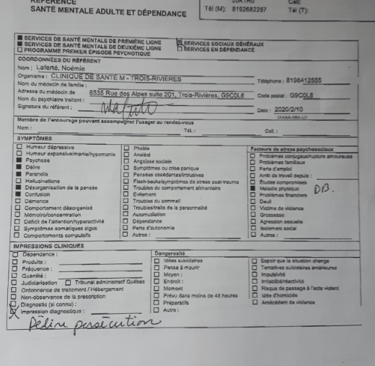 Bon contact pas pensée délirante, preuve qu'ils l'ont contactés. Demande qui ont fait disparaitre et une du Dre Laferté, car elle en a fait 2. Preuve dans suite 2020
