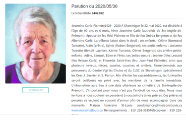 Jeanne D'Arc Lessard Carle Ste-Angèle de Prémont vidéo 2 PHOTO