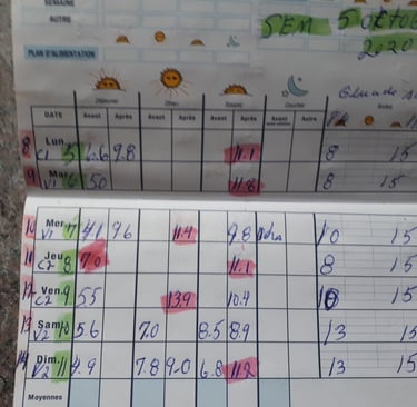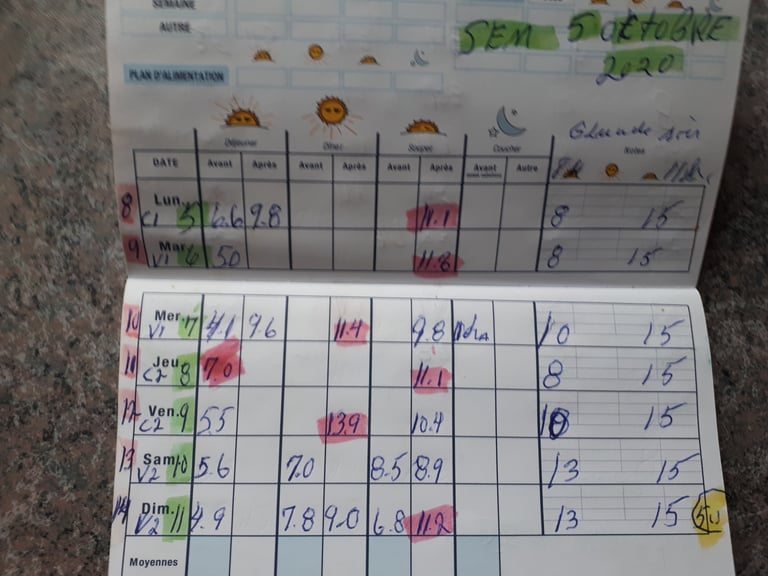 faux: vous voyez les 2 semaines en question ( 2 photo) elle a pris les plus bas et en plus c'est certain que les autres que j'ai pas fait étaient aussi haute, car j'avais pas le freestyle donc j'avais les doigts très sensible. Je ne pouvais pas les prendre Ben ben plus que ça, ce qui veut dire que les autres journées était aussi haute au plus encore car pouvait pas vérifier