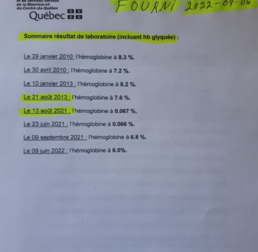 Sa demande principale est d'avoir de l'insuline rapide pour pouvoir mieux gérer ces glycémie. Nous parle des demandes à endocrinologue qui n'aura pas été télécopié, mais c'est rendu au bureau pour vérifier si les demandes y étaient la Secrétaire lui aurait répondu que s'il avait reçu plus d'une demande ils les ont détruits. doute de la vérité de cette réponse. Avec raison j'ai déjà les réponses ils sont déjà sur internet toutes les mensonges complot criminel 2020