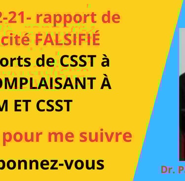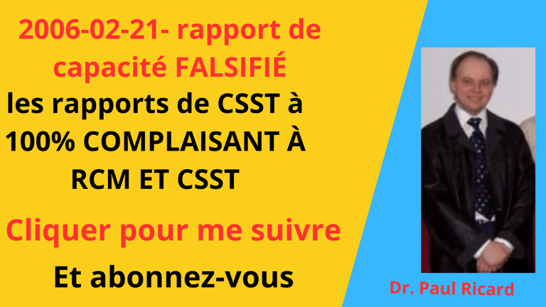 1) Vidéo- complot 1 médicale 2007 Dr. Paul Ricard avec RCM CTA Rapport CSST à 100% complaisant répétition