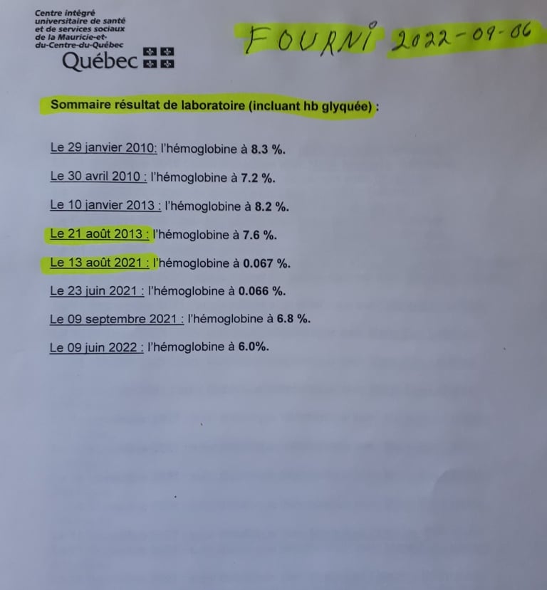 Pourquoi aucun intervenant prend en compte ce que je dis avec mes glycémie de plus de 10 ans avec des 8 à 9.9 hémoglobine glyquée. et refuse de me donner de l'insuline.